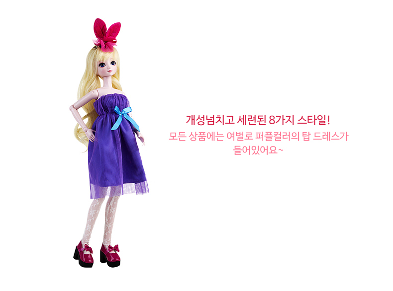모든 상품에는 기본의상, 신발, 가발그리고 퍼플 컬러의 탑 드레스가 추가로 포함되어 있습니다.