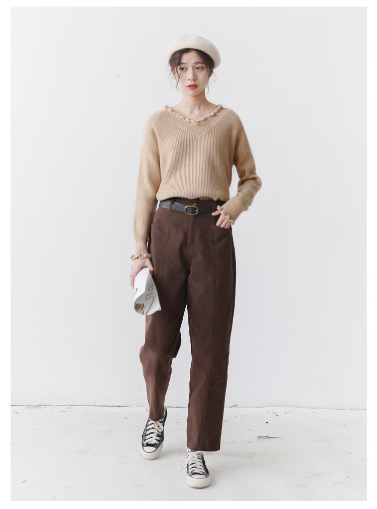 Vネックの襟が首元のラインをきれいに見せてくれます。