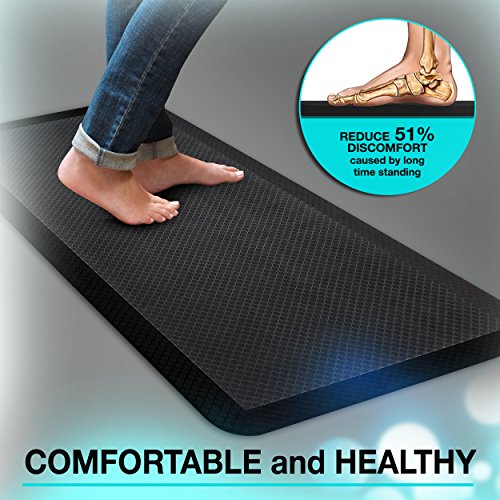 -. Feature : ✓ FEELS LIKE A NEW SET OF KNEES! The cushioned ¾ inch thick fatigue mat is designed for maximum ankle, knee, hip, and back comfort all day. Used in commercial kitchens around the world - now available for your home, garage or office. / ✓ COMFORTING 10 YEAR WARRANTY: If for some reason you are not happy within 90-Days of purchase, return for a full refund. Plus we'll support you for 10-Years with a replacement standing mat! Order Now. / ✓ SAFETY FIRST! From garage to kitchen floor mat to standing desk, this non-toxic, anti fatigue mat is as safe as it is comfy. With beveled curl-free edges and non-slip on all surfaces. Hygiene is easy, use any cleaning method, and air dry. / ✓ EVEN WHEN THE WEIGHT OF THE WORLD IS ON YOUR SHOULDERS... Your 20x39" anti-fatigue floor mat will not compress or lose support. Durable, non-toxic, thick cushioned comfort all day long. Available in classic black, Order Today.