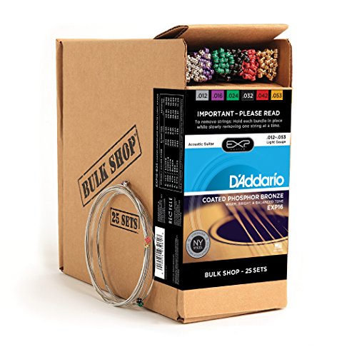 Studio : D'Addario Co. Inc Publisher : D'Addario Co. Inc Binding : Electronics Product Description D'Addario's most popular acoustic set, EXP16 delivers the ideal balance of volume, projection and comfortable playability. This convenient box delivers easy-access to 25 complete sets of strings at near bulk-rate pricing.D'Addario EXPs are the most natural-sounding, longest-lasting coated strings available. EXP Coated Technology starts with the highest quality wrap wire materials, precision drawn and micro-coated on our advanced proprietary machinery. Strings are then wound normally, delivering tone and feel identical to D'Addario's world renowned acoustic strings, with a minimum of 4 times more life. You won't believe they are coated!D'Addario, the world's largest manufacturer of musical instrument strings, is known as The Players Choice with a reputation for unsurpassed quality and consistency. All D'Addario strings are manufactured in the U.S.A. using proprietary, digitally controlled, state-of-the-art machinery for unmatched performance, set after set. 0
