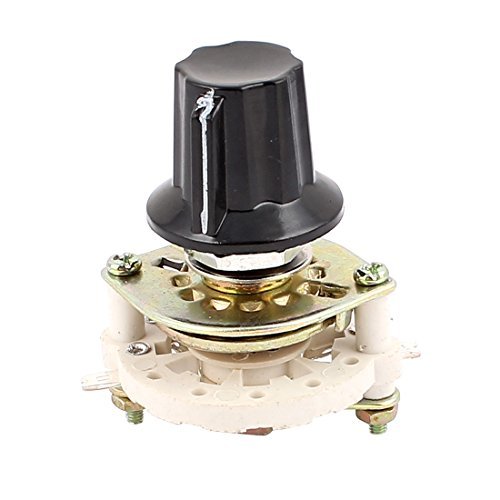 -. Feature : Product Name: Rotary Switch; Country of Manufacture: CHINA; Material: Metal, Ceramic, Plastic / Net Weight: 42g; Package Content: 1 x Rotary Switch;1 x Plastic Cap; Model: KCZ1*6 / Main Color: White,Silver Tone; Dimensions(Not IncludeTerminals): 34 x 44mm/1.33'x1.71'(D*H); Male Thread Diameter: 10mm/0.39' / D-Shape Shaft Diameter: 6mm / 0.24'; D-Shape Shaft Length: 10mm / 0.39' / Pin Number: 1 x 7; Contact Type: 1 Pole 6 Throw