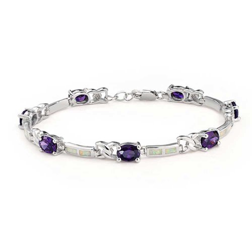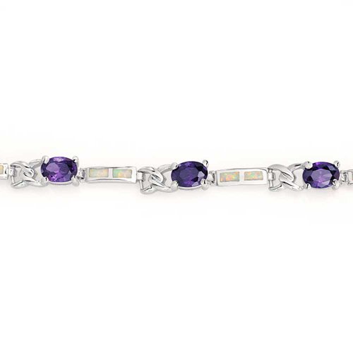 -. Feature : Synthetic Opal tennis bracelet / .925 Sterling silver / Synthetic Opal inlay and Simulated Amethyst colored cubic zirconia / Measure: 7 inch L x 0.19 inch W / Weight: 12.4 Grams