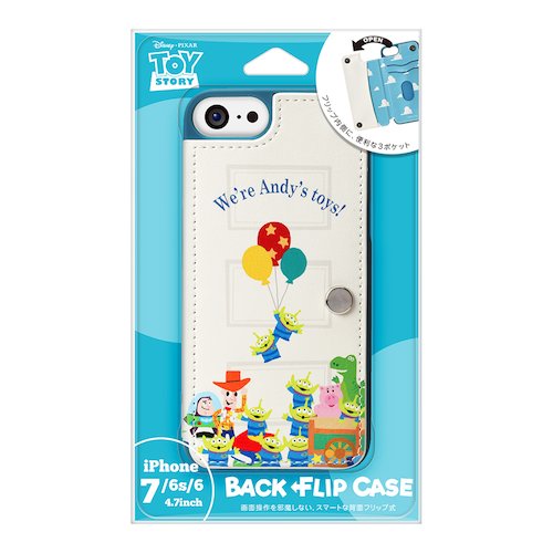 "PG - DCS 233TOY" is a back flip cover for iPhone 7 / 6s / 6 which designed a flip with three pockets on the back so as not to disturb the screen operation, and printed a character of Toy Story.