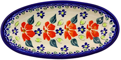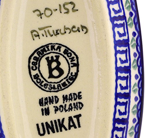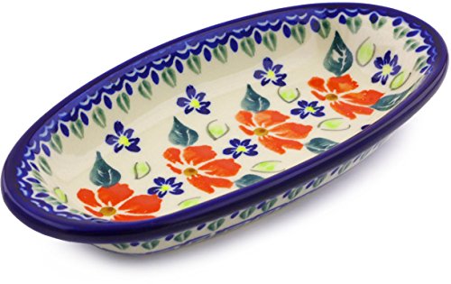 Studio : Boleslawiec Publisher : Boleslawiec Product Description Polish Pottery 7-inch Condiment Dish Grecian Fields Theme Dimensions: 3¾" wide, 7¼" long, 1¼" high Capacity: 6oz Polmedia Polish Pottery Stoneware is: * Hand crafted and hand painted in Boleslawiec, Poland * Microwave safe, dishwasher safe, oven safe up to 480 F, freezer safe * Lead and cadmium free * Crack and chip resistant * Intended for everyday use, easy to clean * Highly collectable About Polish Pottery Polish pottery is known for its versatility in the kitchen and on the table. It is safe for use with food in the microwave, freezer, oven and dishwasher. Polish stoneware is resilient to abrasives making it durable and resistant to scratching or chipping. It distributes heat evenly for perfect baking and is also nonstick for easy clean-up, making it easy to care for. The bright patterns never fade, and are offered in thousands of variations to mix and match. It is this combination of function and beauty that makes Polish pottery so appealing. The pottery is fired in electric and gas kilns at temperatures exceeding 2200 degrees Fahrenheit. This results in a stoneware that is meant to resist aging and provide lasting beauty that stands the test of time. Polish stoneware is lead and cadmium free. Polish Pottery is hand crafted and hand painted in the Boleslawiec region of Poland. This region is famous for its naturally found white clay which artisans have used for centuries to craft this durable and beautiful stoneware. Each piece of pottery is carefully formed and painted by hand to ensure that exceptional attention to detail is paid to each piece. The most beautiful and intricate patterns are called UNIKAT patterns. These patterns bear the artist's signature. 0