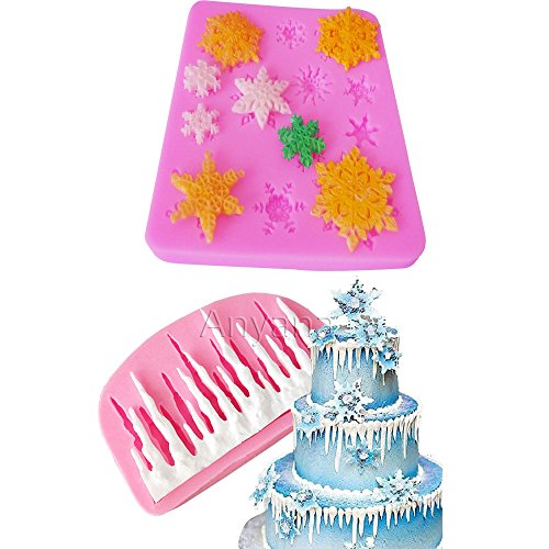 - √ This Christmas Icicles cold ice mini Snowflake cake candy fondant mold will help bring your cake or cupcake decorating skills to a new level, enabling you to bring a professional quality to your work. Ideal for use with a wide range of edible and non edible materials, including sugarpaste, petal paste or marzipan, latex, pie decorationg, embellishment and scrapbooking. This is an amazing mold! It's not cheaply made and the details on the fondant are fantastic !
