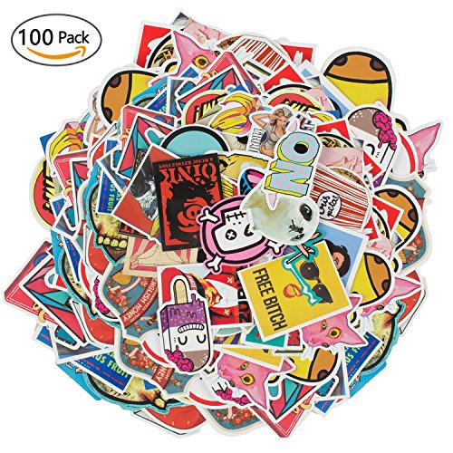 Sticker Pack 100-Pcs Sticker Decals Vinyls Graffiti Patches for Laptop,Kids,Cars,Motorcycle,Bicycle,Skateboard Luggage,Bumper Stickers Decals Bomb Waterproof, by E-Starlet