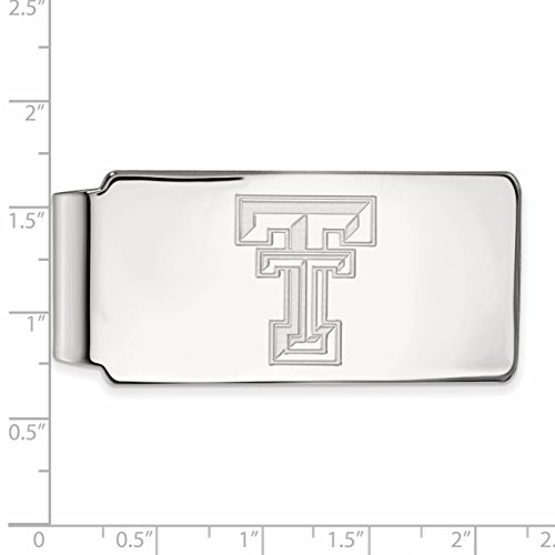 Studio : Jewelrypot Publisher : Jewelrypot Binding : Jewelry Product Description 2.1in long | Product Type:Accessory | Jewelry Type:Accessories | Accessory Type:Money Clips | Material: Primary:Sterling Silver | Material: Primary - Color:White | Material: Primary - Purity:925 | Length of Item:26 mm | Width of Item:55 mm | Finish:Polished | Plating:Rhodium | Licensed By:NCAA | Manufacturing Process:Laser Cut | Licensed Organization:Texas Tech University 0