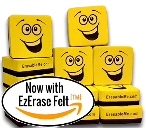 Premium Dry Erase Eraser Set of (12) with EzErase Felt (TM) for Cleaning Whiteboard Pens and Markers off White Boards at Home - Office & School - from ItemMax