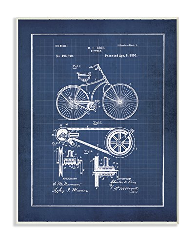 Stupell Home Décor Vintage Bike Blueprint Wall Plaque Art, 10 x 0.5 x 15, Proudly Made in USA
