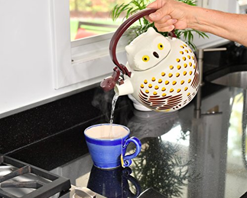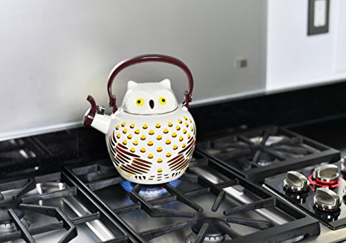 CHARMING WISE OWL - Delightful Owl style enamel teakettle adds a touch of charm to your kitchen to brighten your day.