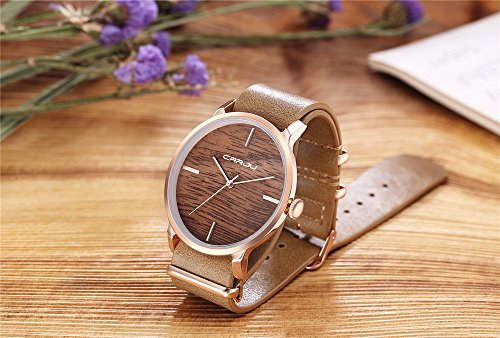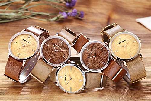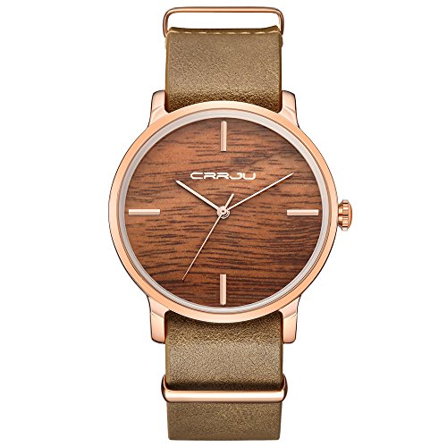 CRRJU Women Fashion Leather Dress Watches Unisex Quartz Simulation Wooden Color Wristwatch Casual Watch
