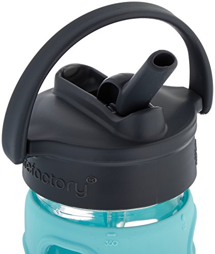 Lifefactory Glass Bottle with Straw Cap and Silicone Sleeve, 12-Ounce, Turquoise