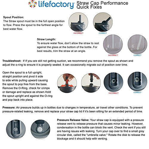 Life factory 12-ounce (350 ml) glass water bottles glass water bottles are ideal for adults seeking a smaller capacity, lighter weight bottle that fits into handbags, backpacks and car cup holders. The volume also works well for active kids. These innovative bottles feature durable glass construction that offers pure taste with no chemical leaching. The bottle's glass is surrounded in a patented silicone sleeve that both protects against breakage and provides a comfortable, non-slip gripping surface. The bottle also features a wide-mouth opening making it easy to fill with ice cubes, pieces of fruit, or drink mixes and powders. The straw cap is designed for upright, spill proof sipping--with no tipping required--perfect for use on-the-go or in yoga class. The straw cap has a handy pivoting handle that makes it easy to carry the bottle and that stows out of the way while drinking. For easy care, the silicone sleeve and bottle can be washed together. All components of the bottle are dishwasher safe. It is recommended to wash the cap and straw on the top rack. The cap is constructed of BPA/BPS-free polypropylene (ppno.5) With no phthalates, PVC, or polycarbonates. The straw is constructed of durable medical-grade silicone. All Life factory components are made in the USA or Europe and all products are assembled in the USA.