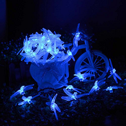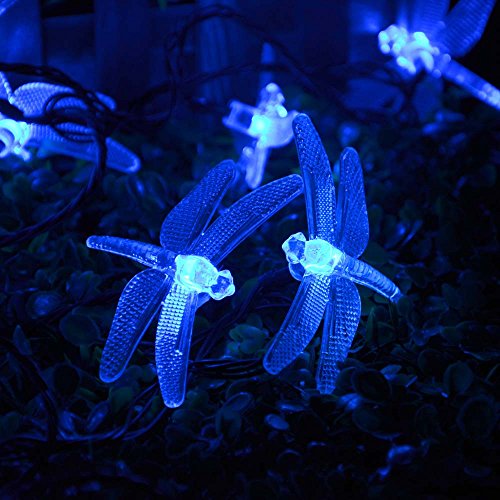 -. Title : Qedertek Outdoor Dragonfly Solar String Lights, 20ft 30 LED 8 Modes Fairy Lighting for Christmas Trees, Garden, Patio, Wedding, Party and Holiday Decorations