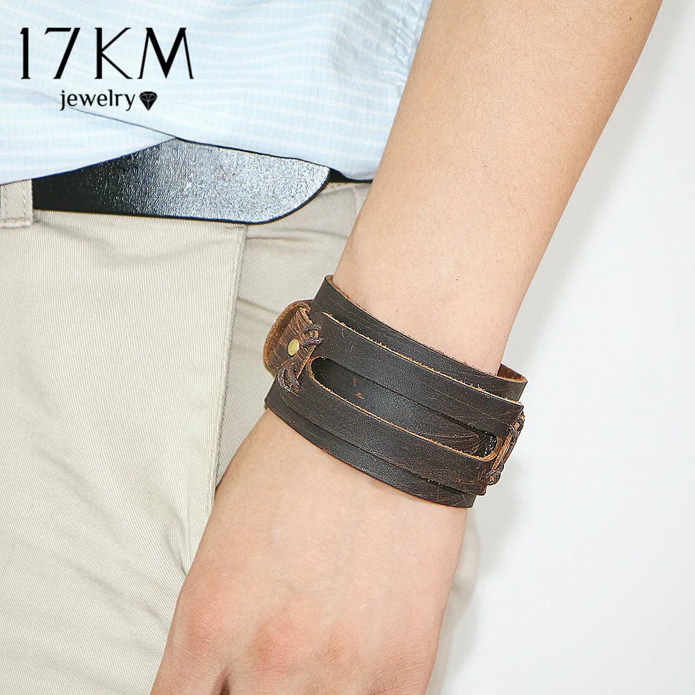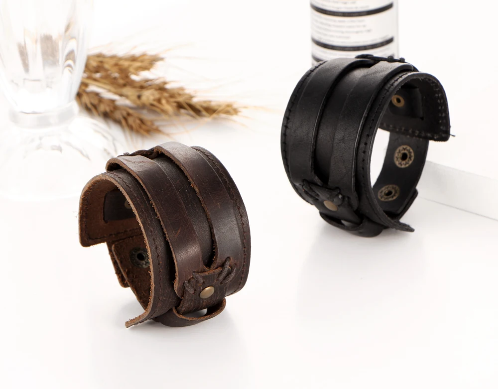 Function:Double Wide Leather Bracelets