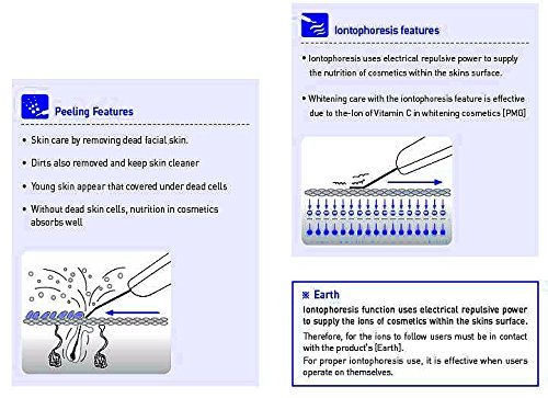 Iontophoresis Feature: Iontophoresis uses electrical repulsive power to supply the nutrition of cosmetics within the skins surface