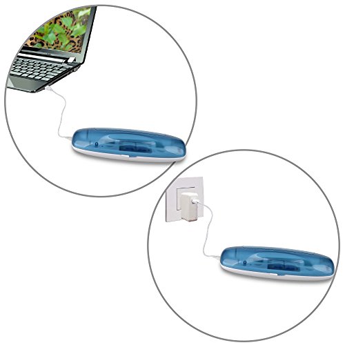 This is a sleek and slim design portable UV toothbrush sanitizer travel case for easy packing in your purse of carry on luggage, portable for using at home, office or while traveling.