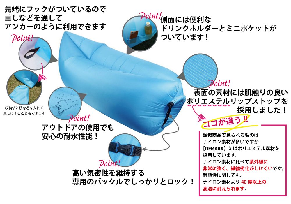 ■ DEMARK uses high strength 210D polyester, water resistant and strong material, so water pressure resistance up to 3000 mm, load capacity up to 200 kg OK