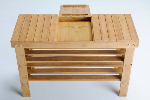 -. Title : SoBuy 100% natural bamboo shoe rack, with storage compartment ,Bench