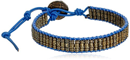 -. Title : M. Cohen Handmade Designs Large Brass Thai Tube Beads on Colored Leather Bracelet