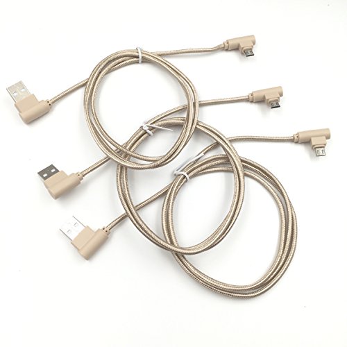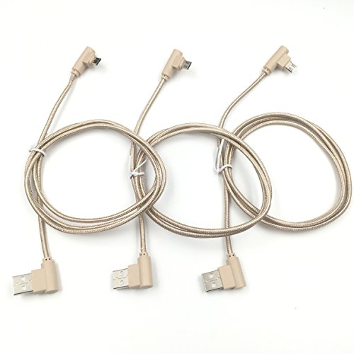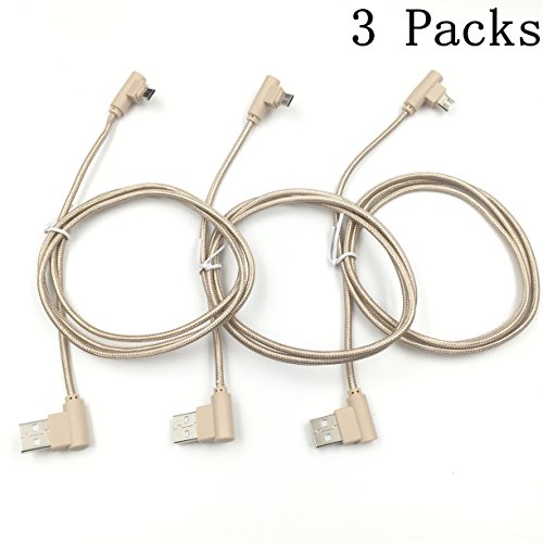 YB-OSALA 3 Peces! 3ft 90 Degree Micro USB charger cable - Right Left Angle 90 Degree samsung galaxy s7 s6 CHARGER CABLE HTC SONY XPERIA (Gold)