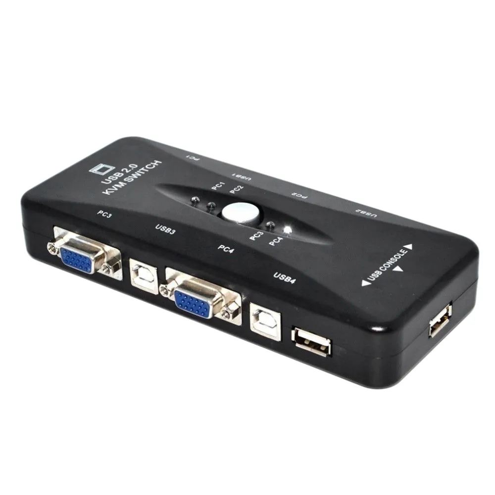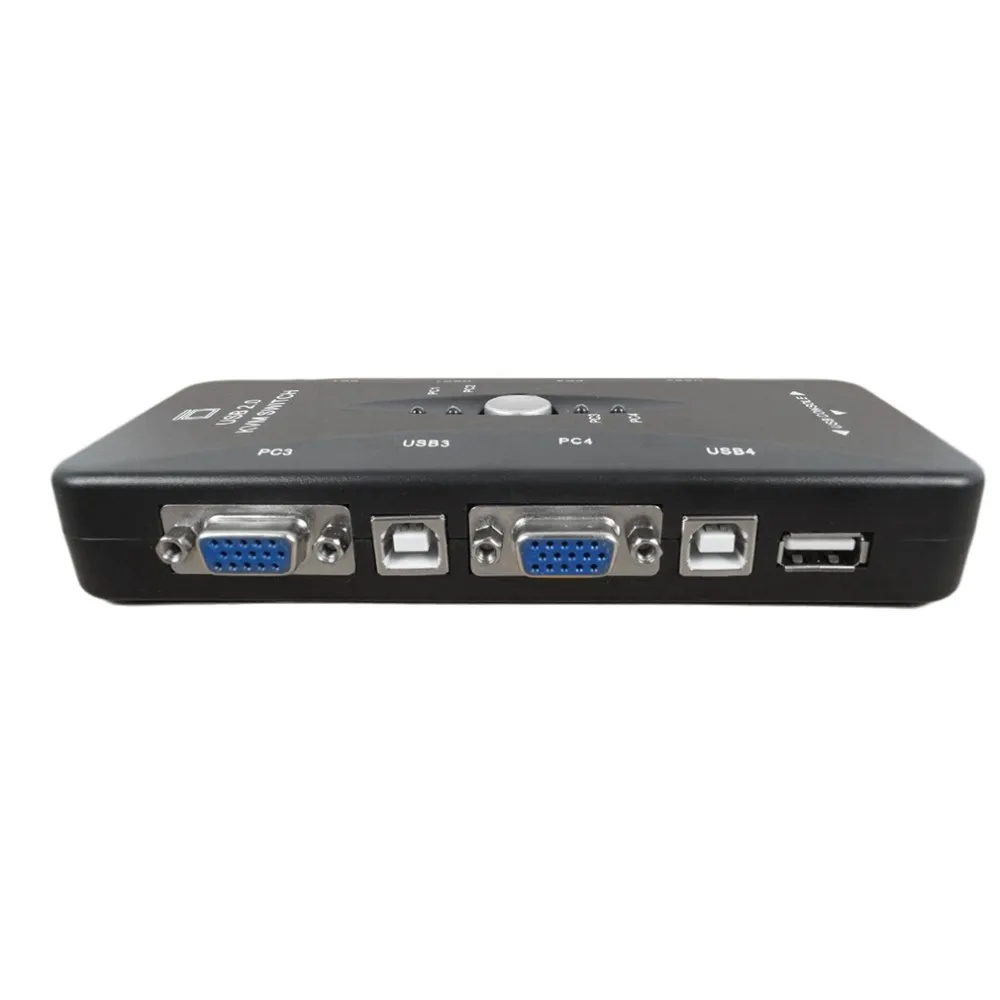 4 Port hub USB 2.0 KVM VGA/SVGA Switch Box Adapter Connects Printer Intelli keyboard Mouse 4 Computers Use 1 monitor New