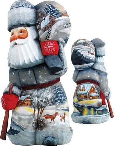 G. Debrekht Delightful Village Santa Hand-Painted Wood Carving