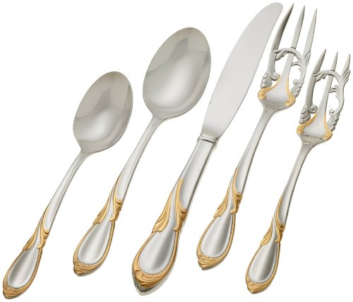 Yamazaki Cache Gold Accent 42-Piece Flatware Set, Service for 8