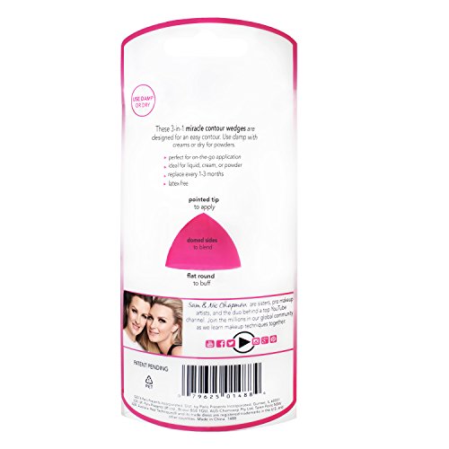 -. Feature : These 3-in-1 miracle contour wedges are designed for an easy dewy contour; perfect for on-the-go application, use the pointed tip to apply, the domed sides to blend, or the flat round to buff; easy tip: use the sponges damp with creams or dry for powders / Sweep on concealer or blush with these Real Techniques Miracle Contour Wedges; this set of 4 makeup sponges let you apply your makeup, blend it in & buff to photo-filtered perfection; small enough to keep in your purse or makeup bag for on-the-go touch ups / Real Technique Cruelty Free Miracle Contour Wedges are compact and versatile; don't let their size fool you, these wedges can be used for a variety of applications; blend & buff but also correct mistakes such as over-application or to remove stray eyeliner / Perfect for oily skin, dry skin, or combination skin; use with cream, liquid, or powder blushes or highlights to create a polished, flawless look good for any occasion; use wet for a dewy look or dry for a clean, professional style; perfect for blending / Through Real Techniques, women all over the world are transforming their makeup routines, and themselves as well, with the approachable expertise, friendship, & expert tools from Sam & Nic; welcome to the Real Techniques Community, and get behind the look