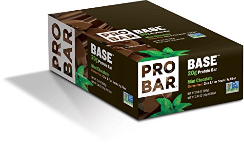 PROBAR - BASE 20g Protein Bar - Mint Chocolate - Gluten-Free, Non-GMO, with Chia & Flax Seeds - Pack of 12