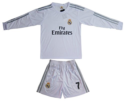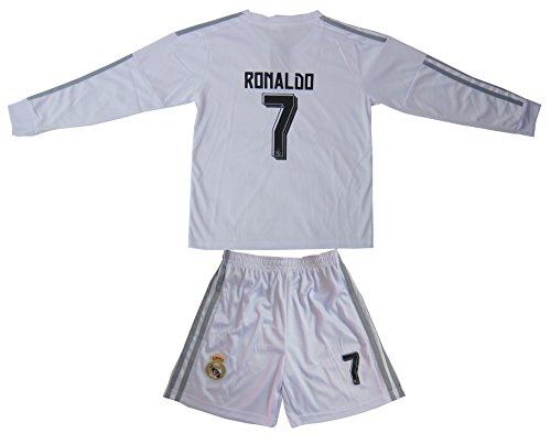 2015/2016 REAL MADRID #7 RONALDO KIDS HOME LONG SLEEVE SOCCER JERSEY & SHORTS YOUTH SIZES (S (Ages 4-6))