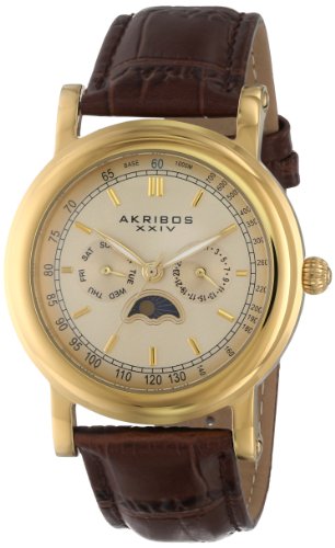 -. Title : Akribos XXIV Men's AK632YG Retro Multifunction Gold-tone Stainless Steel Brown Leather Strap Watch