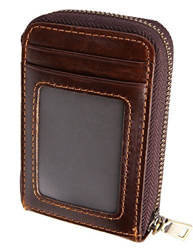 -. Feature : Size:2.95x4.52x1.37inch / Material: Vintage oil wax top layer cowhide leather,provides a vintage, chic look.with natural lines and soft feel, the appearance of glossy moisture, don't need using oil, always maintain the appearance of moist and meticulous touching. / Compact design,big capacity :roomy enough for fitting plenty of cards,13 small slots, 2 big cash compartment for folded cash money,1 ID window pocket and 1 outer pocket ,provide best organization for you. / Safe: Integrated RFID blocking technology guards protect your card information from electronic thieves. / Perfect size for traveling shopping or simply keeping in your purse,a great gift for family and friends.