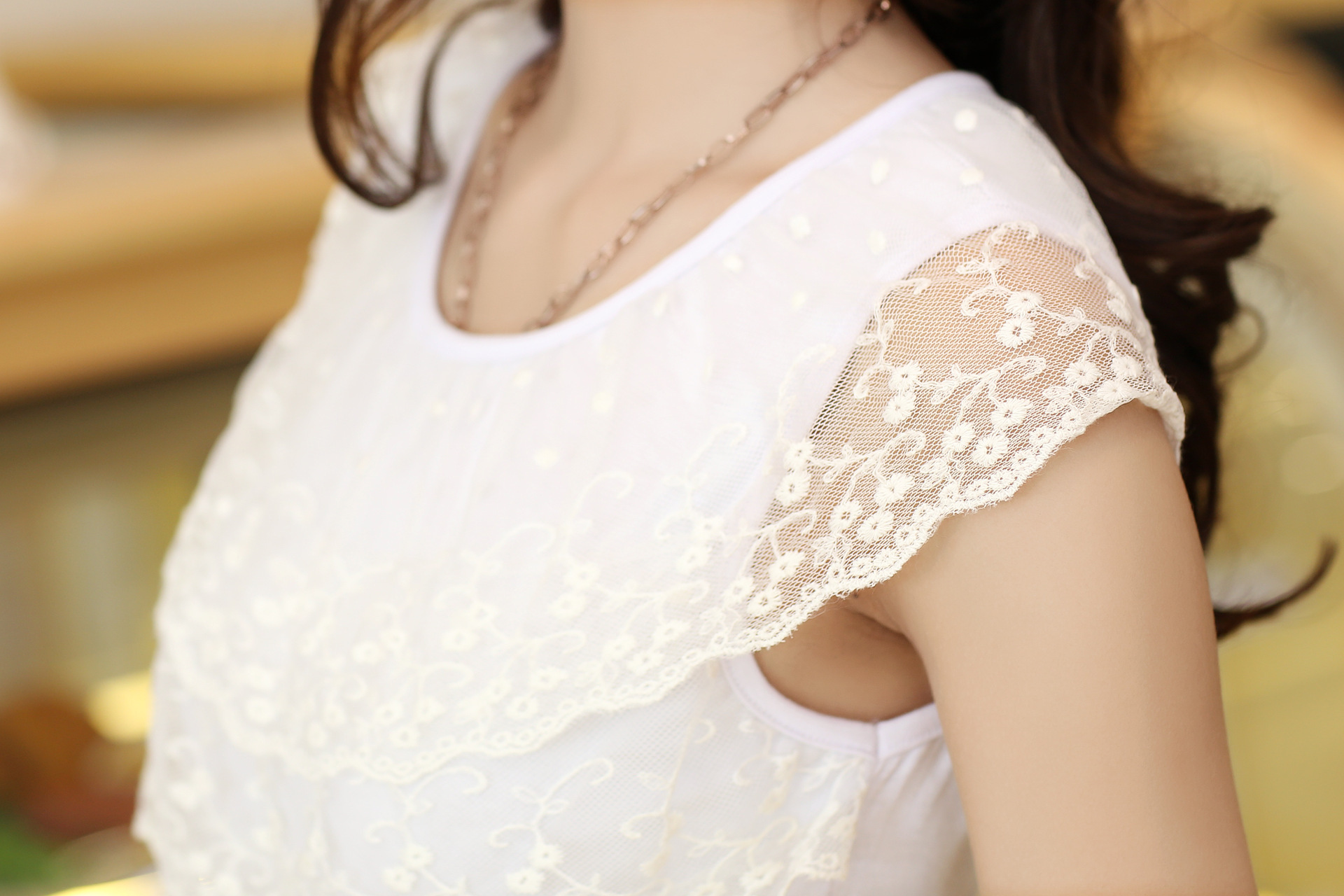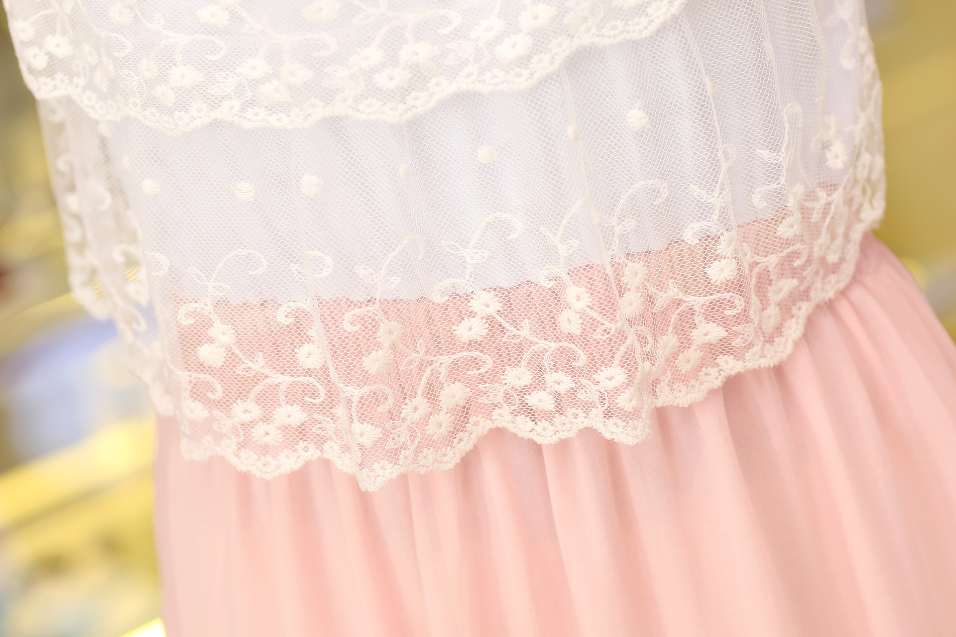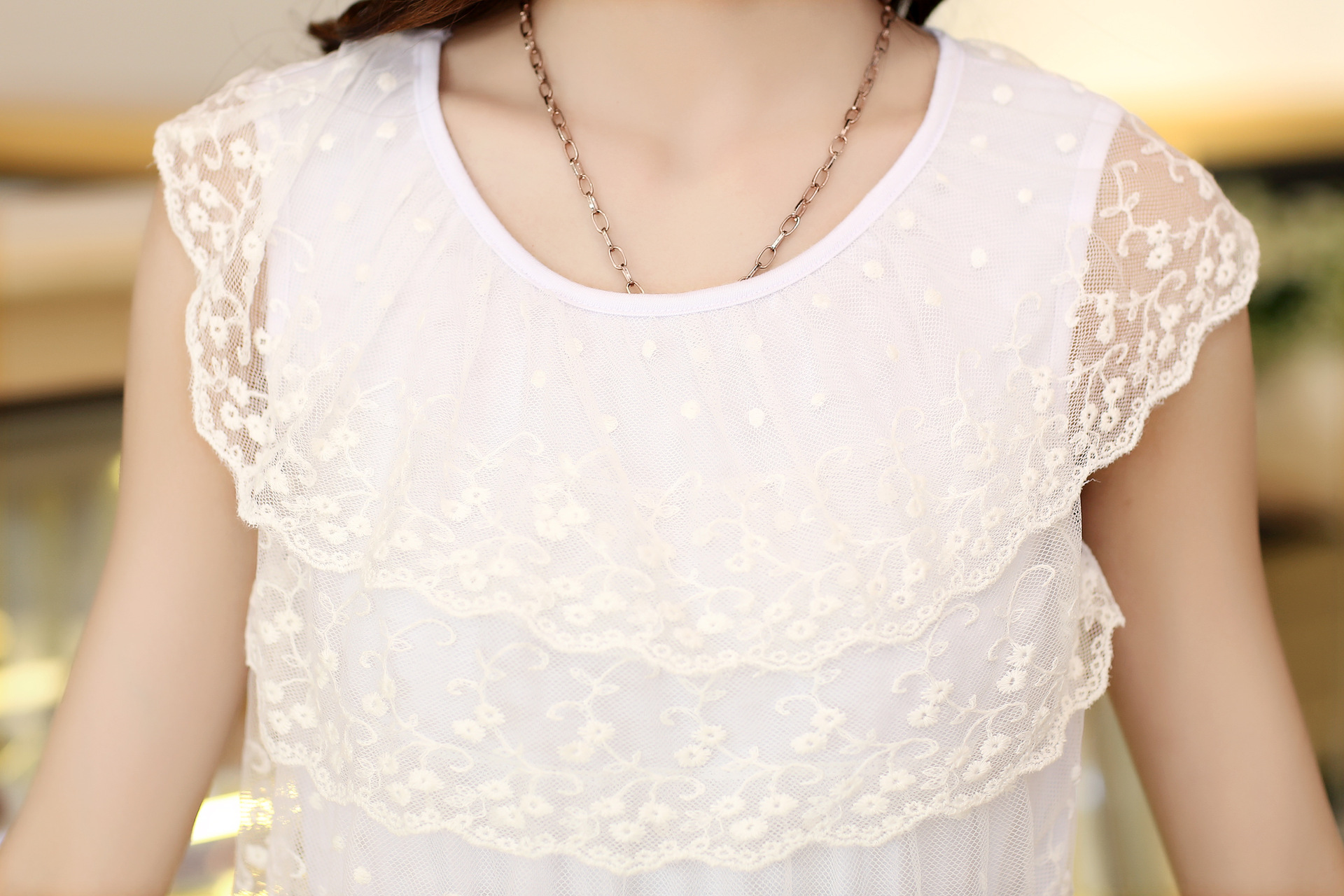 【质地】珍珠雪纺+蕾丝花边