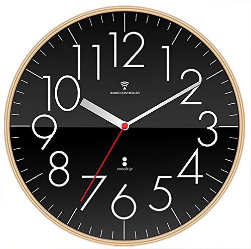 -. Title : ottostyle.jp 電波掛け時計 掛時計 【黒盤/フルインデックス】 木製フレーム プライウッド 見やすいシンプルな文字盤 連続秒針 サイレントムーブ 電波時計