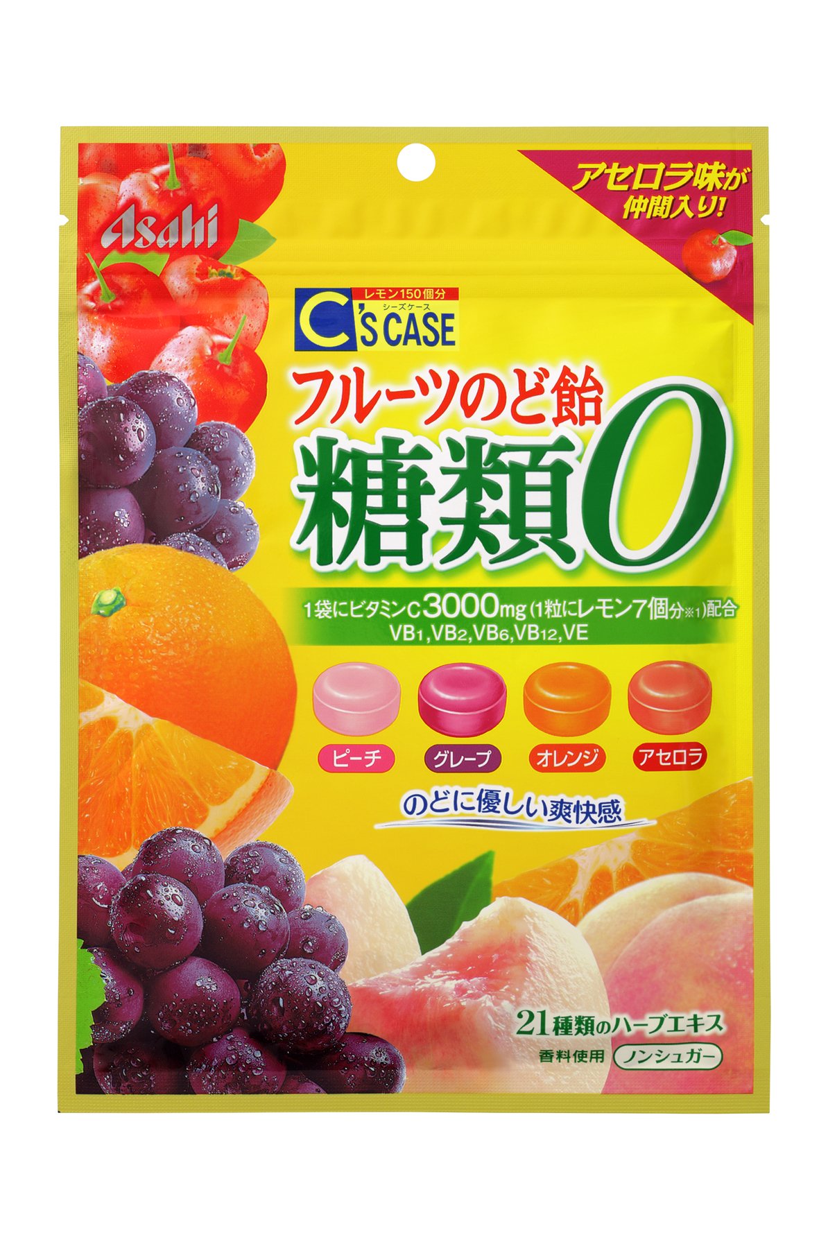 Added fruit "acerola" flavor with functional sense of vitamin C to fruits with high preference with saccharide 0, olive, peach and grape flavored flavor.