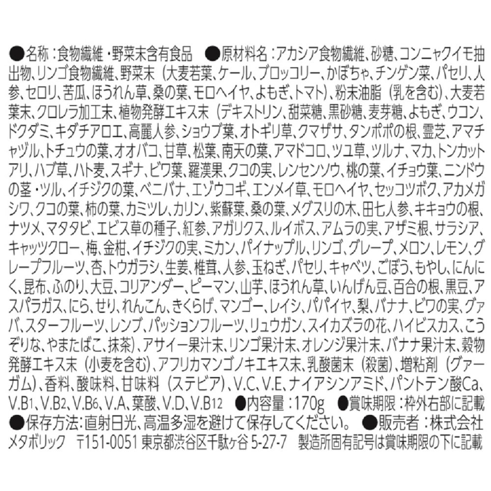 野菜・フルーツ18種類、緑を中心に赤、橙、黄、紫をバランス良く配合したドリンクで、インナーキレイ&ダイエットをサポートします。B((インナーキレイプラン)15cc計量スプーン山盛り1杯を100ccの水とよく混ぜてお召し上がりください。(1食置き換えプラン)150cc計量スプーン大盛り2杯を200ccの水とよく混ぜてお召し上がりください。