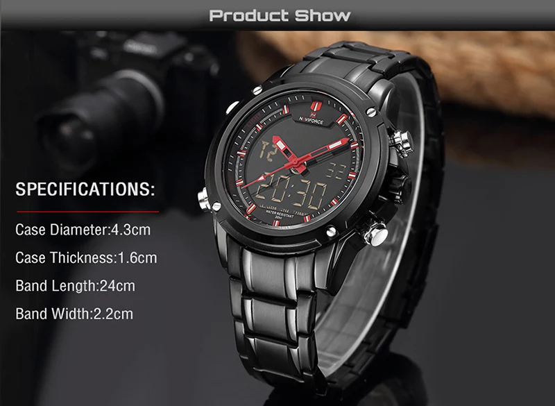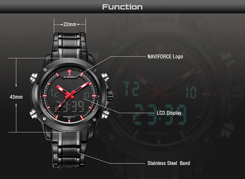 Feature:Water Resistant,Stop Watch,Complete Calendar,Back Light,Alarm