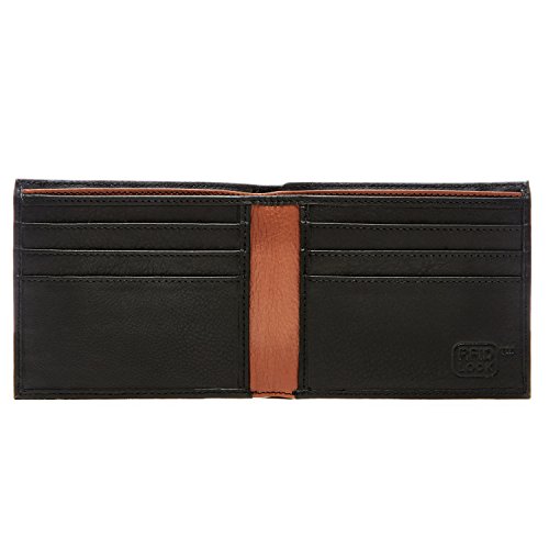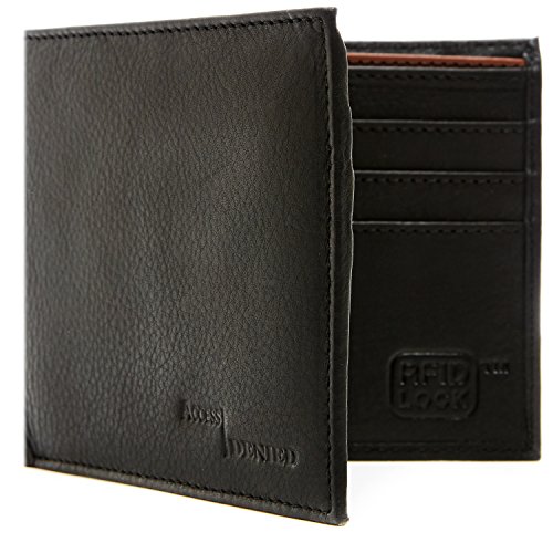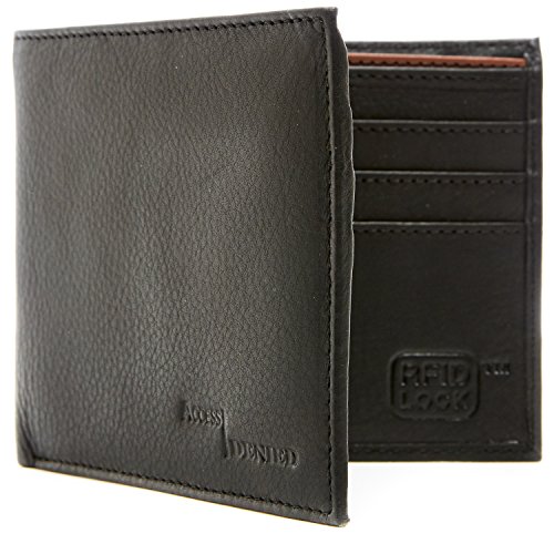 Binding : Apparel Product Description Mens two-tone leather bifold wallet has a smooth solid black exterior leather with a rich two tone black and tan interior. Wallet offers spacious sectioning,credit card slots, 2 full length bill compartments, plus 2 slip pockets. Each wallet is RFID shielded in and around all pockets and folds. Prevent thieves from remotely accessing (skimming) and reading your credit card account numbers and vulnerable private information encoded on the RFID microchip. Don't become a victim of the silent crime of electronic pick pocketing that can lead to identity theft. Protect and lock your RFID credit cards, enhanced drivers license and information safely within our proprietary rfidLOCK blocking technology. Our exclusive line of Access Denied wallets for men are made with the finest grade leather that has been drum dyed, vegetable tanned and hand rubbed to produce a smooth, soft, rich look and feel. Wallet arrives in a attractive gift box. 0