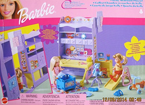 -. Feature : Barbie All Around Home Kelly Bedroom Playset is a 2001 Mattel production, with Multi-Lingual writing on box: English, French, Spanish, etc. / INCLUDES: Bed & Shelf Unit, Book Shelf Unit, Toy Trunk, Keyboard Piano, Doll Slide, Tricycle, Chair, Rug, Computer, & some Toy Accessories. Playset can be attached to other All Around Home Playsets &/OR Can be used by itself. Each Playset is Sold Separately. / Included items are Pretend & Intended for Kelly Doll & other 4.5" Fashion size Dolls; NO DOLLS are included. / For Ages 3+ Years. All sizes, colors & details are provided to the best of my ability & may not be exact & may vary. / *Box ONLY has some shelf wear/creases. For Box Condition see CONDITION NOTE or Email Seller for Details.
