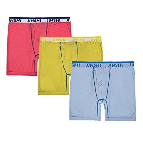 JINSHI 3-Pack Long Leg Boxer Briefs Performance Bamboo Underwears for Mens ( XL, Red+Blue+Yellow )