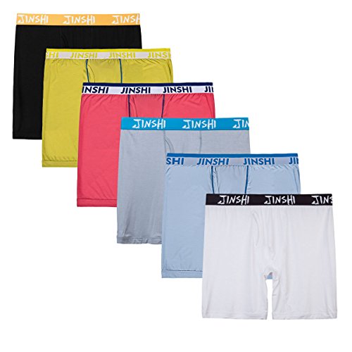 JINSHI 6-Pack Mens Active Performance Long Leg Boxer Briefs Bamboo Trunks Assorted Colors Size XL