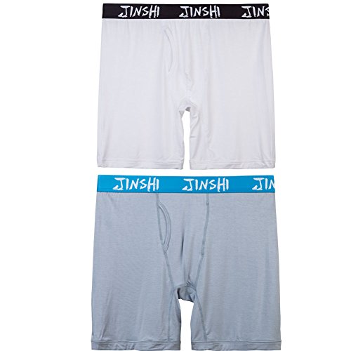 JINSHI Men's 2-Pack Performance Stretch Long Leg Boxer Brief ( Medium, White+Gray )