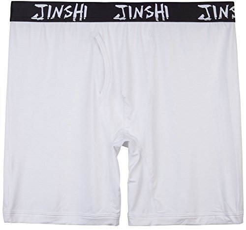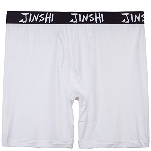 JINSHI Men Athletic Compression Bamboo Boxer Briefs with Fly Trunk White Size XL