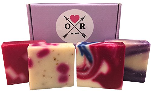 Oliver Rocket Handcrafted Soap Gift Set (4 bar set) - 5 ounces each - Face & Body Soap - Lavender, Petal Dance, Wild Passion & Raspberry Rush - Made in...