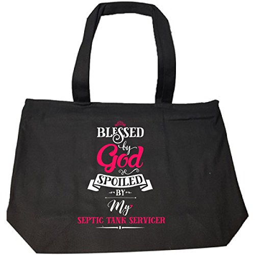 -. Feature : Blessed By God Spoiled By My Septic Tank Servicer - Tote Bag With Zip / 100% cotton. Large main compartment with a quality zip on top and internal zip pocket (pictured) / Made from high-grade durable fabric, with dual handles. Professionally P.R.Inted and shipped in USA / Dimensions (inches): 15 h x 20 w x 5 d. Large enough to fit a full sized laptop and lots more! / Inked Creatively is the only authorized seller of this tote bag, do not buy from cheap imitation sellers