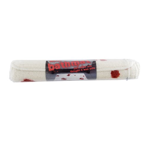 - Bath mat features bloody foot prints