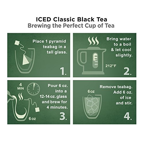 Feature : Pure Leaf iced tea bags, Iced Classic Black Tea, uses high grown Kenyan black tea that delivers a crisp and clean flavor with balanced floral and malty notes for true refreshment. / Premium long leaf teas, crafted with exceptional quality ingredients always in perfect balance to ensure distinct characters and rich flavors. / Tea leaves are simply picked, rolled, and crafted- we select the finest tea leaves from tea estates around the world, and do as little as possible to them to let their essence shine through. / Picked from Rainforest Alliance Certified tea estates around the world, each blend with its own unique flavor, characteristic of its geography. / For the best taste experience, pour 6 fluid ounces of hot water over one pyramid tea bag and steep for 4 minutes. Then add 6 ounces of ice
