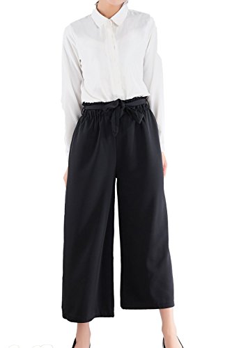 -. Title : (ペプ) PEPU ガウチョパンツ レディース ウエスト ゴム マーク リボン ベルト きれいめ クロップド ワイド パンツ
