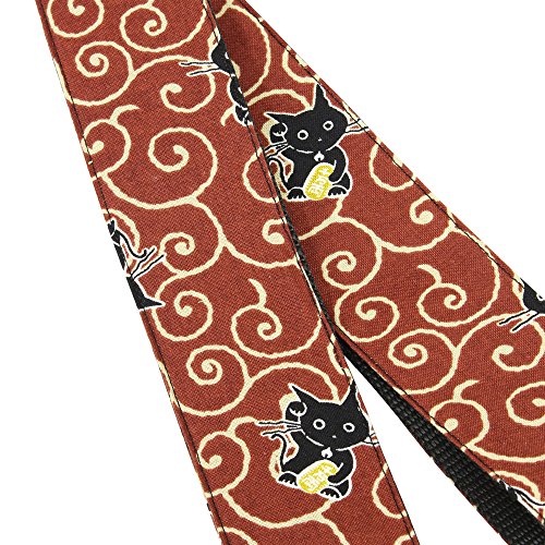 -. Feature : Durable woven strap with leather ends and polypropylene lining, Japanese Traditional Karakusa with Beckoning Cat / Standard style electric, acoustic guitar and bass strap / Comfortable and high quality, vintage finished durable metal parts / 2" = 50mm wide, Length adjustable between 33.5" - 59" = 85 - 150cm / Hand made in Japan